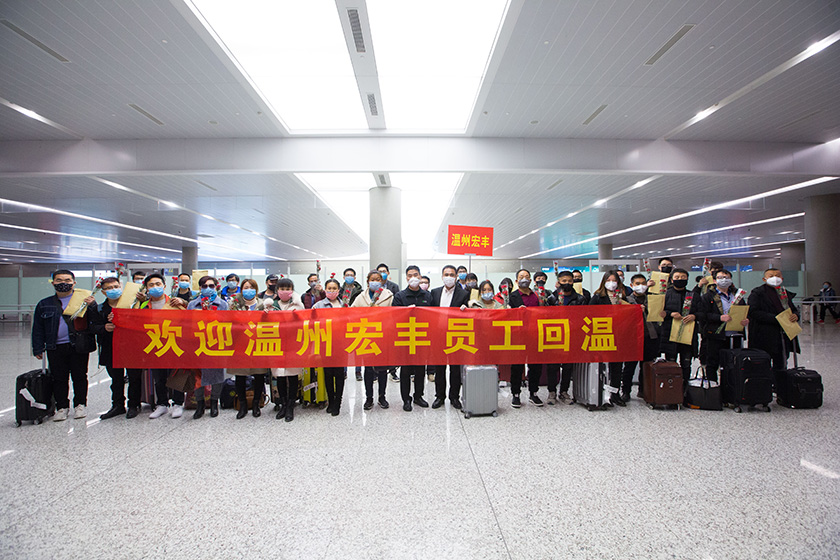 “政企協(xié)力復(fù)工復(fù)產(chǎn),溫州宏豐包機票接回返崗員工”2月26日,百余名來自重慶、貴州、陜西等地返崗員工順利抵達溫州龍灣國際機場,政府、公司領(lǐng)導(dǎo)到機場,歡迎返崗員工。