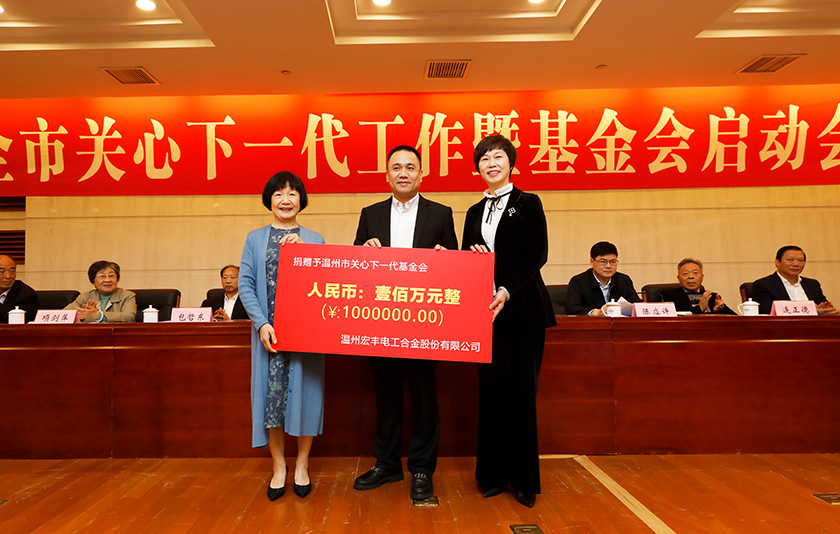 4月14日,公司董事長兼總裁陳曉先生代表溫州宏豐向市關(guān)心下一代基金會捐款100萬元人民幣,為推動崇高事業(yè)薪火相傳,奮力書寫溫州市關(guān)心下一代事業(yè)新篇章,實現(xiàn)溫州高質(zhì)量跨越式發(fā)展貢獻企業(yè)應有力量。
